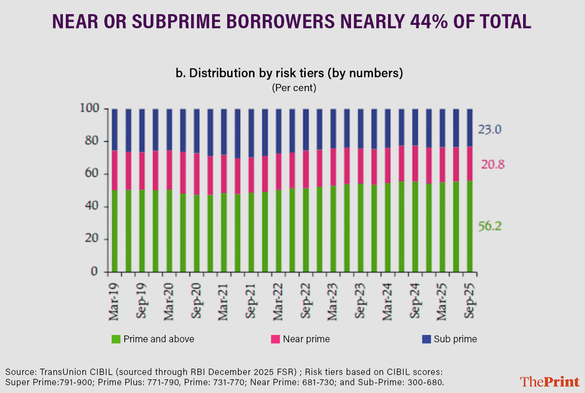 The trend, which continued into FY26, has another wrinkle in it. The percentage of near or subprime loans – to borrowers with low credit scores – was 44 percent, indicating poorer financial health.
