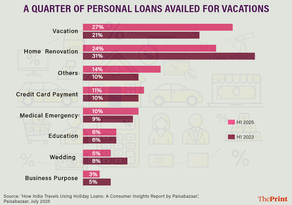 So, even if a person cannot afford such a vacation, one borrows money to finance this holiday. This behavioural change explains why the most common use of unsecured loans in India is “vacationing”, with more than a quarter of those loans being used to fund holidays.