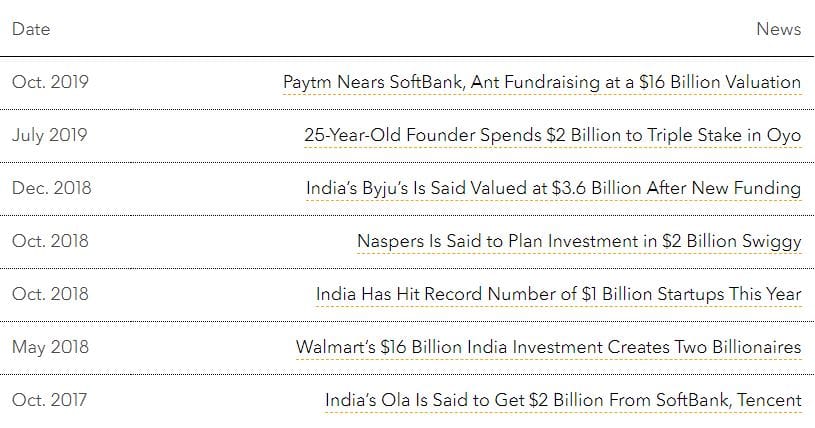 Headlines on the swelling valuations for India’s homegrown tech firms have been increasing in number over the past couple of years: