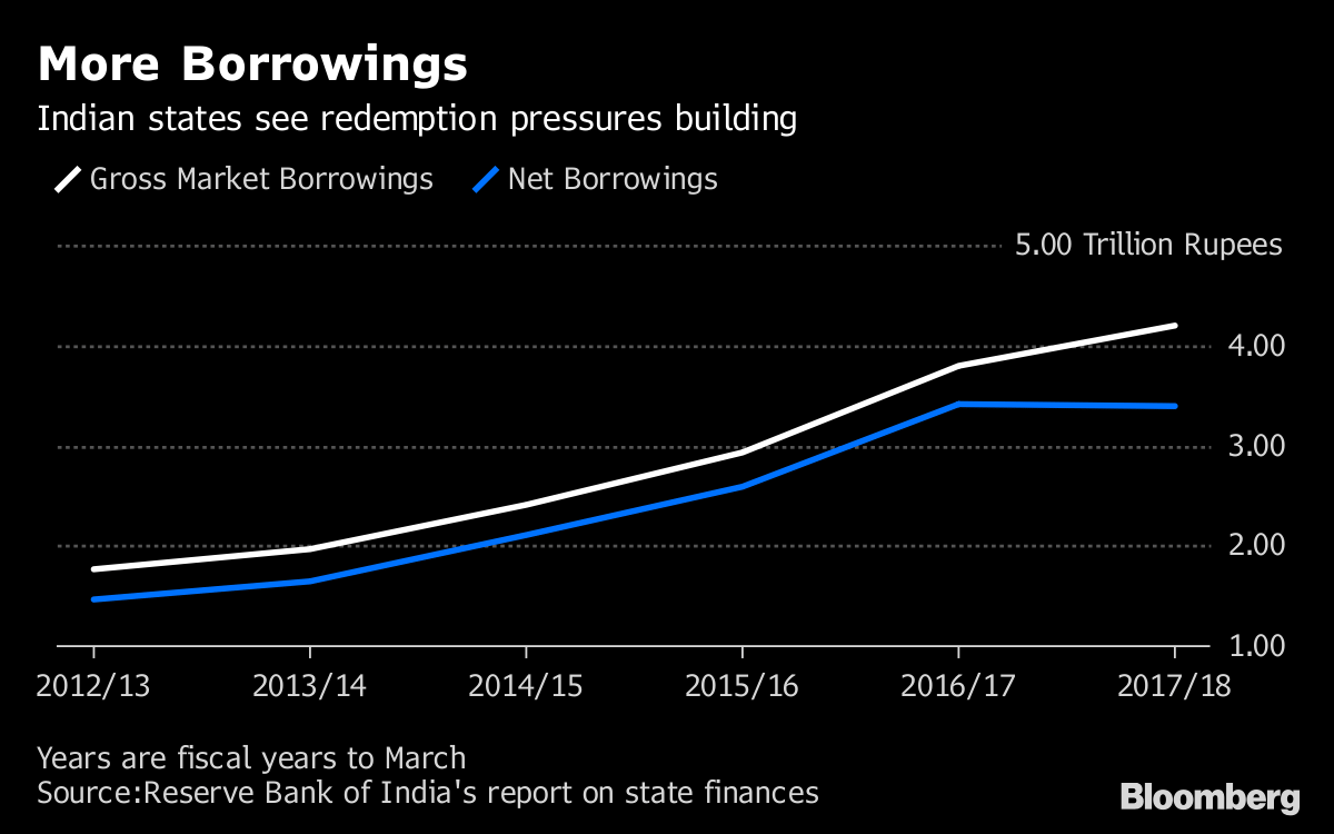 States’ debt sales are in addition to federal borrowings in a year when Prime Minister Narendra Modi’s government missed its budget deficit targets and many see the stress building ahead of 2019 federal polls when public spending usually rises.
