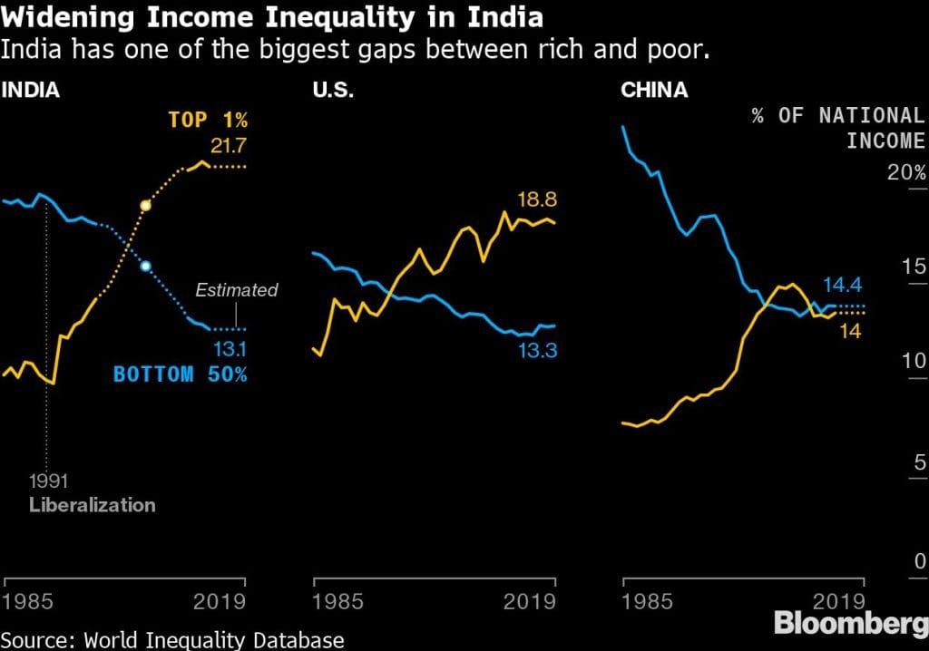 Vast inequities developed. Researchers have found wealthier people in urban areas and from upper castes were taller in India, a sign of development favoring groups that were already advantaged. The percentage of women joining the workforce fell from 30.3% in 1991 to about 21% in 2019, according to data from the International Labor Organization. India’s government spent less than 2% of GDP on healthcare before the pandemic.