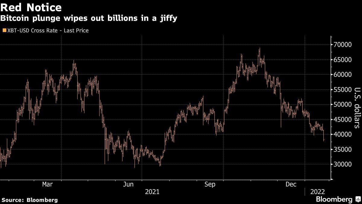 Crypto-centric stocks also dropped on Friday, with Coinbase Global Inc. at one point losing nearly 16% and falling to its lowest level since its public debut in the spring of 2021, Bloomberg data show.