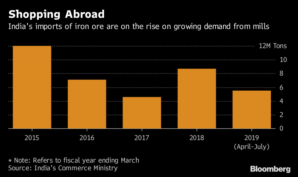 “Today, India is a net importer of iron ore,” as producers along the coast buy from overseas because they face domestic logistics challenges, mainly as a result of an overloaded railway system, Tuhin Mukherjee, managing director of Essel Mining & Industries Ltd., said in an interview in New Delhi.