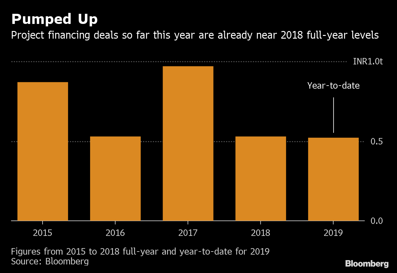 Local-currency loans for projects came to 520 billion rupees ($7.5 billion) in the quarter to March 31, the highest since 2011, and compared with 144 billion rupees in the previous three months, according to data compiled by Bloomberg.