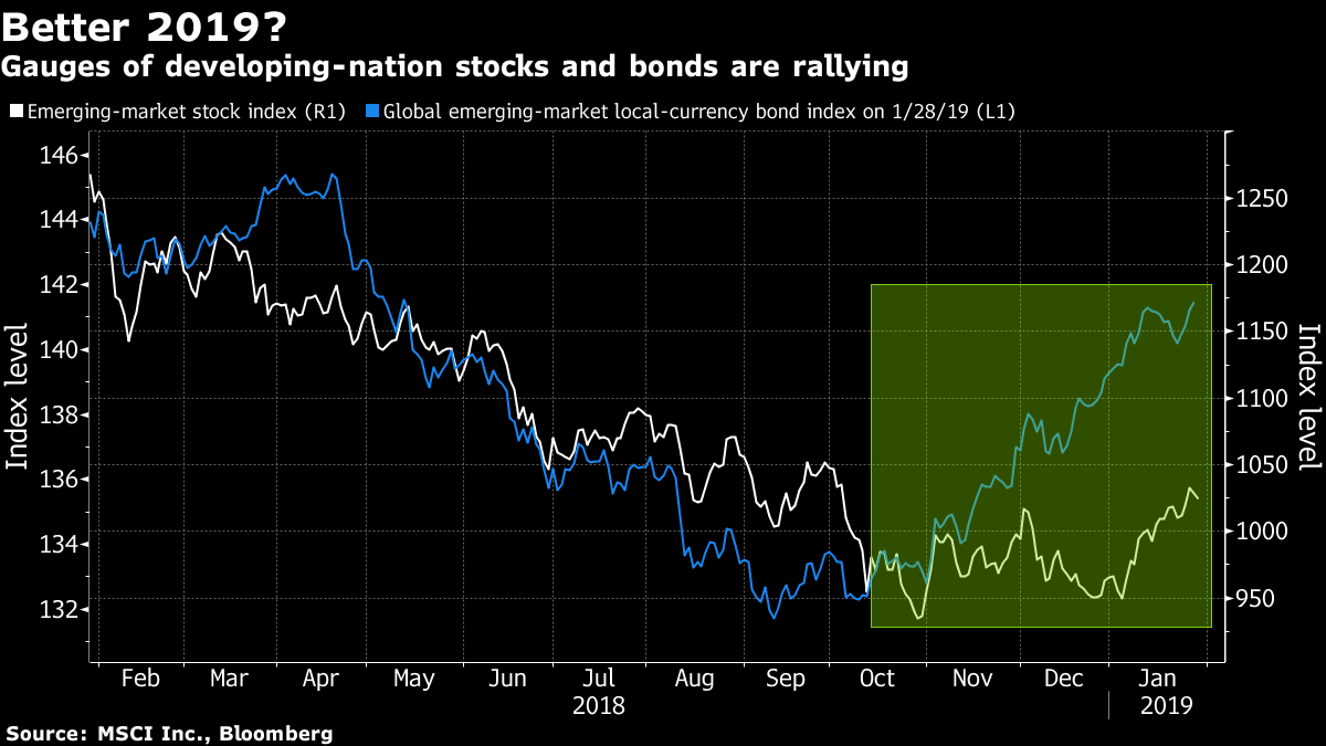 “The two macro threats — basically the dollar and higher interest rates coming from the US — are basically diminished and they are behind us, ” Paris-based Blanque said. “There is room moving forward for an appreciation of most currencies in the emerging-market space. So this is a piece of good news.”
