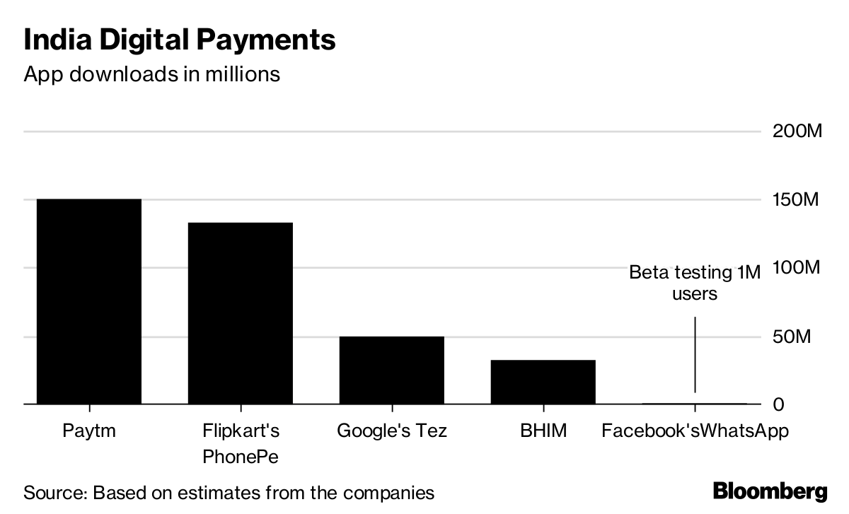 Still, the Indian payments market remains a chaotic field where the rules are hazy on what players can offer. And users often switch between apps. Rahul Matthan, a Bangalore-based lawyer, says he’s used every one of the leading payment apps, although he now confines most of his transactions to BHIM, Paytm and WhatsApp payments.