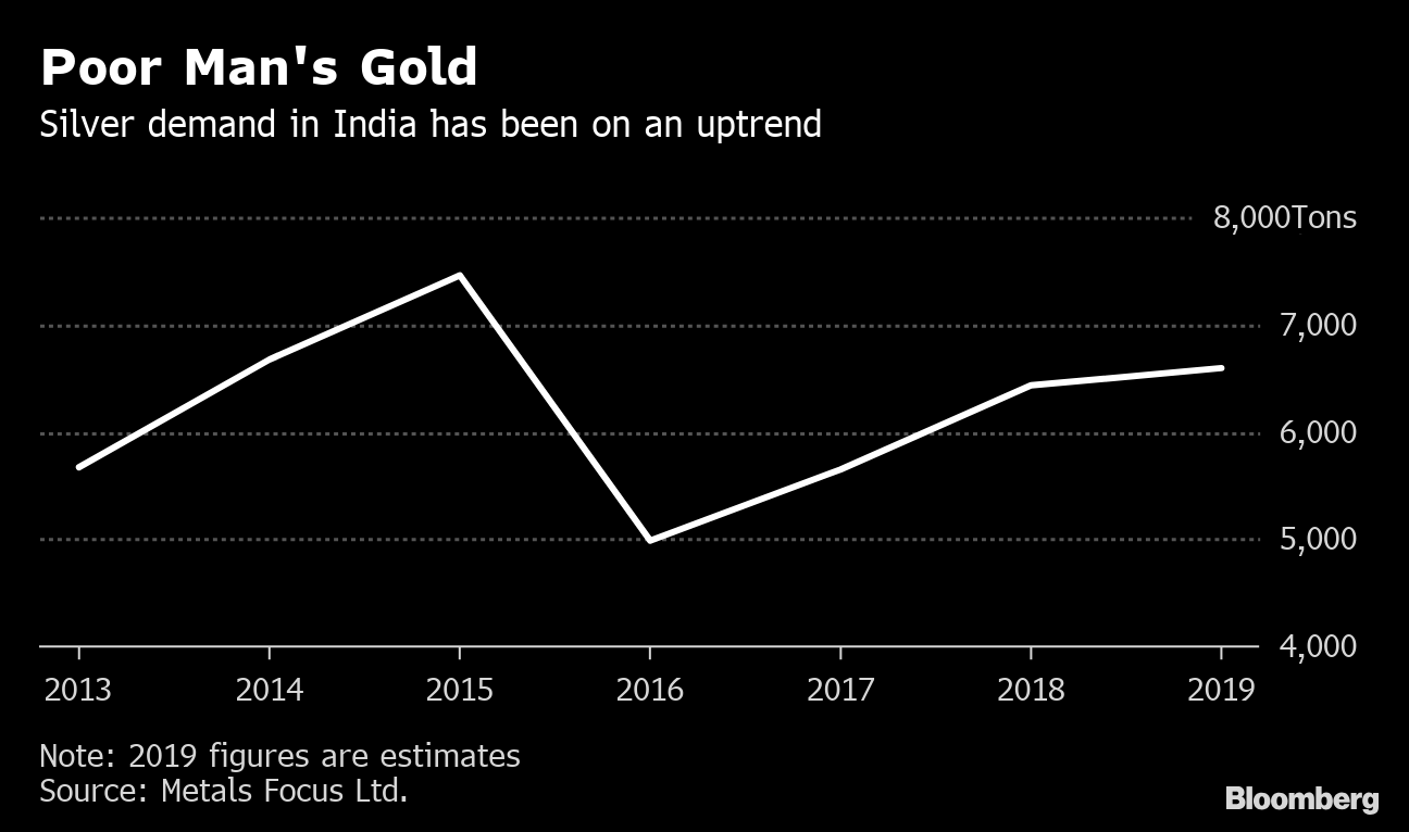 Purchases are set to rise to about 6,590 tons, beating the 6,442 tons bought in 2018 and marking the best year since record consumption in 2015, Chirag Sheth, an analyst for the London-based research firm, said in an interview in Mumbai. The demand recovery will continue over the next few years “because of economic growth, higher income, and relatively low silver prices and penetration of sterling silver,” he said.
