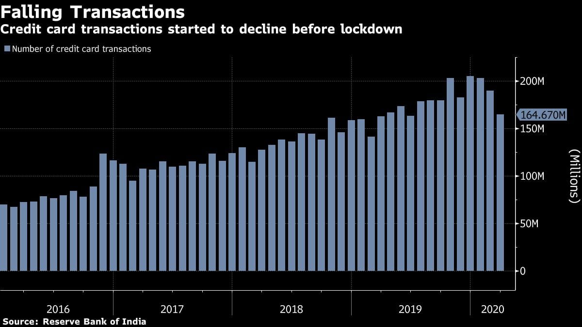 Total number of credit card transactions fell sharply in March, according to data from the Reserve Bank of India. The lockdown was imposed in the last week of March, but activity was slowing even before the announcement was made.