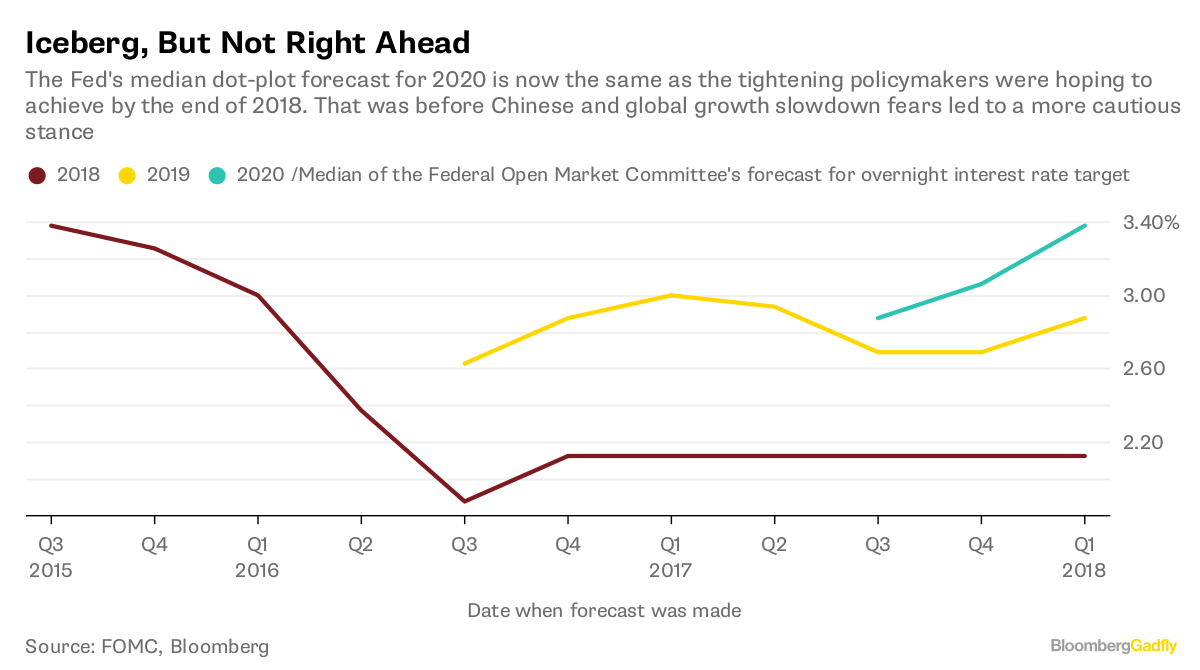 The Fed is projecting end-2020 interest rates that are half a percentage point higher than what it predicted six months ago. By then, the U.S. central bank wants to achieve the tightening it originally hoped to finish this year.
