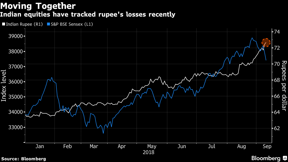 Indian equities have lost about $89 billion since rallying to a record on Aug. 28 as the rupee set a string of lows amid a selloff sweeping most emerging markets. The currency’s slide, she said, follows a “long benign period of stability,” and indicators including robust consumption and a pick up in loan growth show the economy is on the mend after the shocks of a cash ban and the introduction of a nationwide consumption tax.