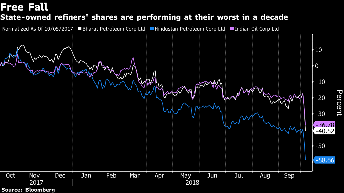 “Earnings will remain at risk as further increases in the subsidy burden can’t be ruled out, given rising oil prices, a depreciating rupee and next year’s general elections,” Kunal Agrawal, a Bloomberg Intelligence, analyst said in a note.