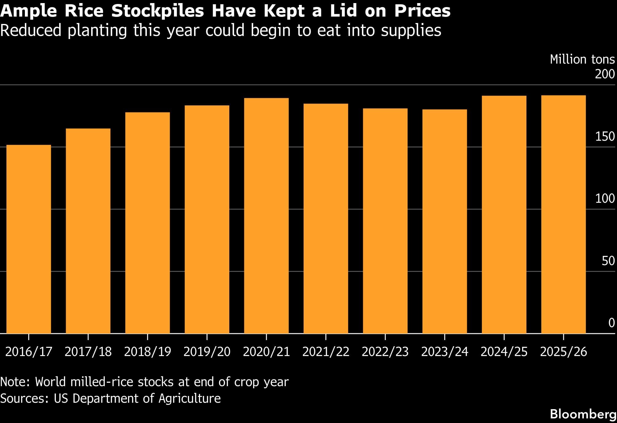 Some farmers in Thailand, meanwhile, have chosen not to harvest the rice crop that’s ready now or are delaying collection, leading to a decline in quality. The dry-season crop in March-April could fall by around 19% from the same year-earlier period, according to a March 31 report by the Bangkok-based Kasikorn Research Center.