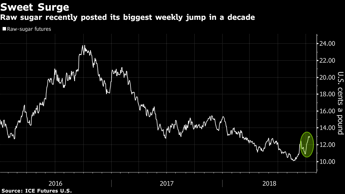 London’s Sugar Week kicked off Monday on the back of raw sugar’s best weekly gain since 2008, a surge driven by a stronger currency in top producer Brazil. But it’s still one of this year’s worst performers, and there was little consensus among traders, brokers and analysts gathering in London that prices will climb much further.