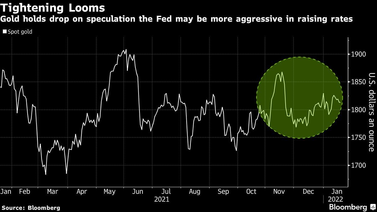 “Gold prices are clearly hanging in there given that Treasury yields have skyrocketed this month,” said Edward Moya, a senior market analyst at Oanda Corp. “Wall Street is pricing in a much more aggressive Fed tightening strategy over these next several months as inflation runs wild. Gold is in for a choppy period, but the medium-term outlook still remains bullish if prices can hover around the $1,800 level.”