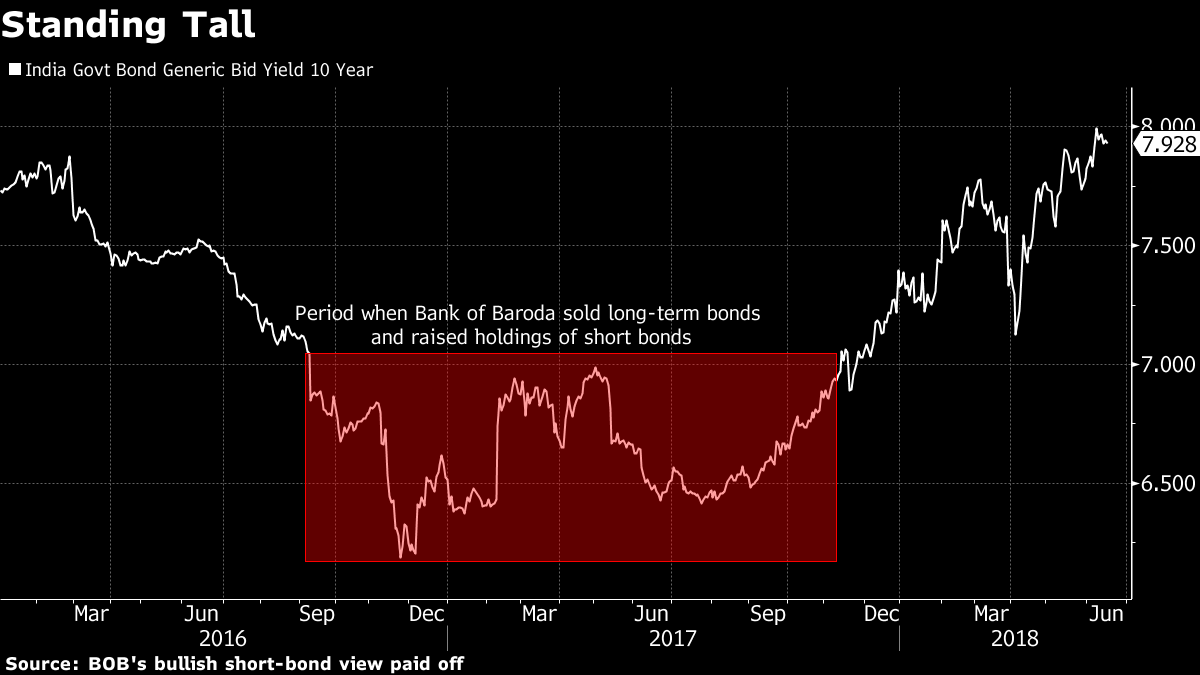 His desk began selling long bonds and buying paper that matured in four years or less, while also bulking up on Rs 20,000 crore ($2.9 billion) of floating-rate debt from August 2016. That very month, pressure was mounting on the central bank to cut interest rates further as the latest data showed slowing economic growth.