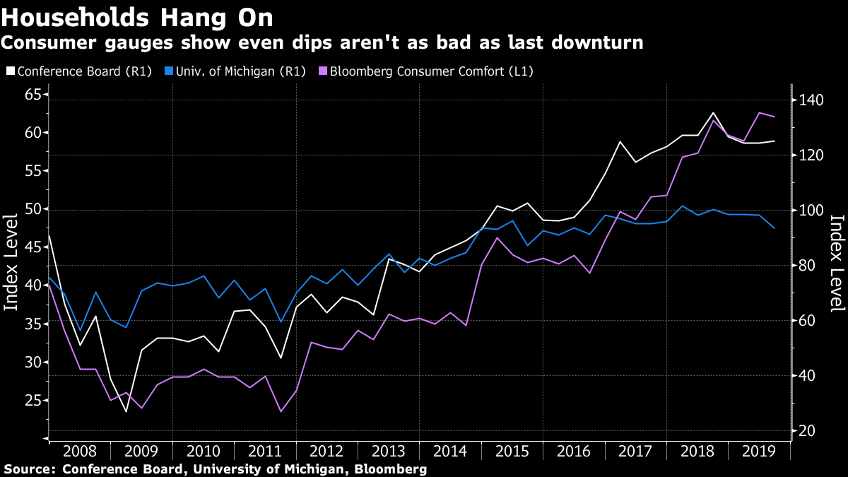 The American consumer has remained a pillar of growth in part because of the lowest unemployment rate in five decades. While the U.S. labor market has shown signs of easing, it should continue to support household spending. Hiring sprees elsewhere have also helped and the Conference Board reported this week that its index of global consumer confidence remains near a record high.