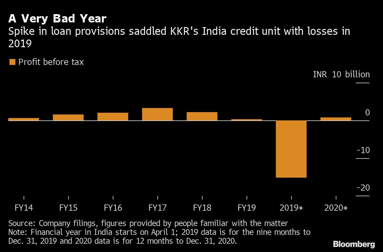 Rocked by the shadow-banking crisis that began rippling through India’s financial system 2 1/2 years ago, KKR’s local credit unit lost 15.16 billion rupees ($207 million) in the final nine months of 2019, wiping out nearly 40% of its capital. While the unit posted a small profit last year as India’s central bank pumped record amounts of cash into the Covid-battered economy, KKR is now in the process of merging the business with a competitor.