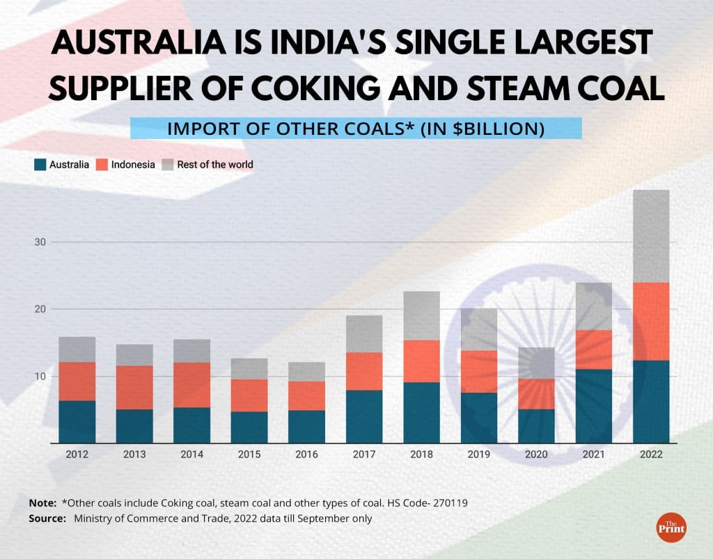 Australia is India’s single biggest source for coking coal. In 2022 (till September), it accounted for more than 57 per cent ($9.56 billion) of India’s coking coal needs ($16.48 billion).