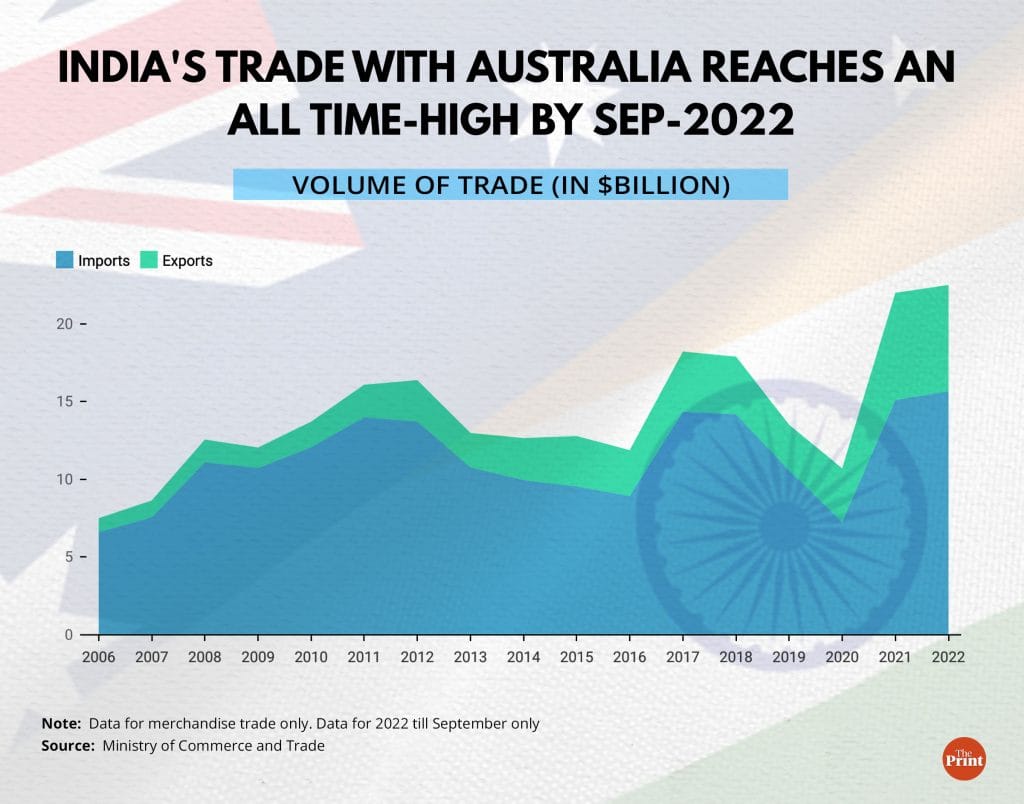 Indeed, India’s trade with Australia in the first three quarters of 2022 has surpassed the $21.98 billion worth of trade done in the entire year 2021.