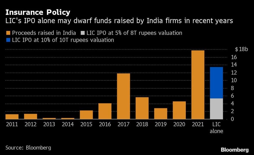 “The size of LIC is breathtaking,” said Abhay Agarwal, fund manager at Mumbai-based Piper Serica Advisors Pvt. While it might be easy for the government to make regulatory amendments needed for the IPO, “it will require significant marketing efforts to cross the Rs 500 billion line,” he added.
