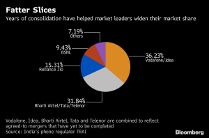 The entry of India’s richest man Mukesh Ambani’s Reliance Jio Infocomm Ltd. in 2016 has proven to be a turning point in consolidation for the market. The upstart stormed in with free voice services for life and initially free data services to lure subscribers, prompting smaller rivals to merge or quit the market altogether.