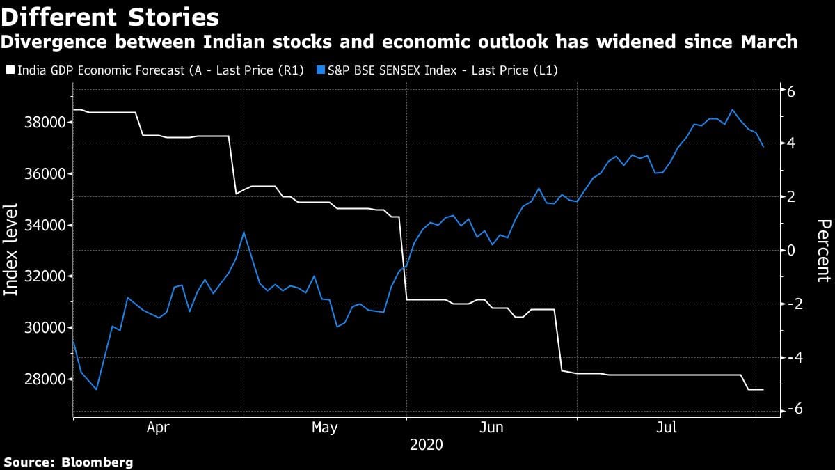 The nation’s shares have logged the one of the best rebounds from the March lows globally while battling some of the world’s worst economic data. The surge has pushed up valuations to a record as investors look past the grim reality and the world’s third-highest tally in coronavirus cases.