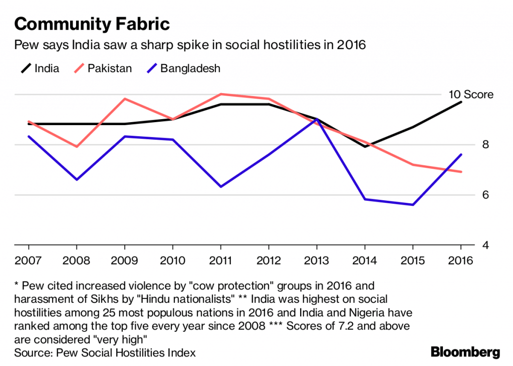 A wave of religious intolerance as India heads toward elections is emerging as a new risk for its biggest companies.
