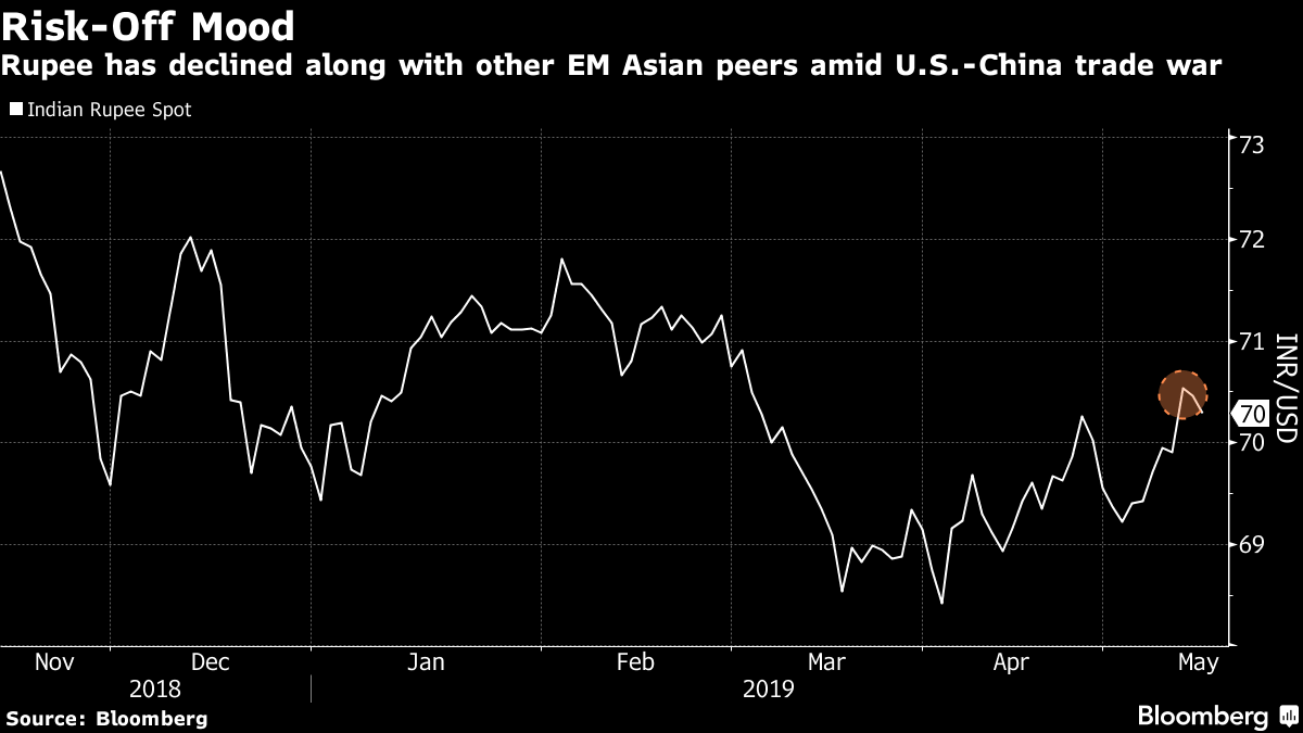 The currency, Asia’s top performer in March, has fallen 1.6% to 70.34 since President Donald Trump’s tweets rekindled the trade spat with China earlier this month. The S&P BSE Sensex Tuesday halted a nine-session losing streak, avoiding the longest-ever stretch of losses, only to decline again on Wednesday as sentiment remains fragile.