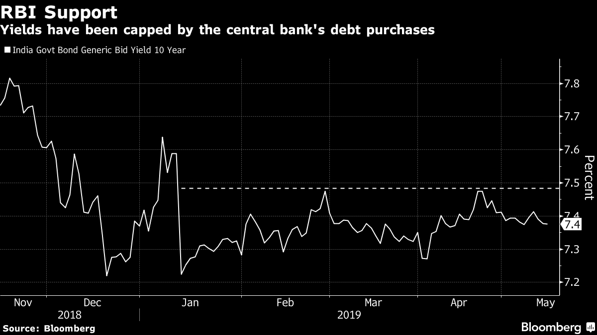 The yield on benchmark 10-year government bonds has dropped to a one-month low amid expectations the central bank will add to two rate cuts this year and bump up purchases of bonds and forex swaps to ease a lingering cash crunch. Foreign outflows of more than $600 million from local debt seen this month may accelerate if polls deliver a fractured mandate.