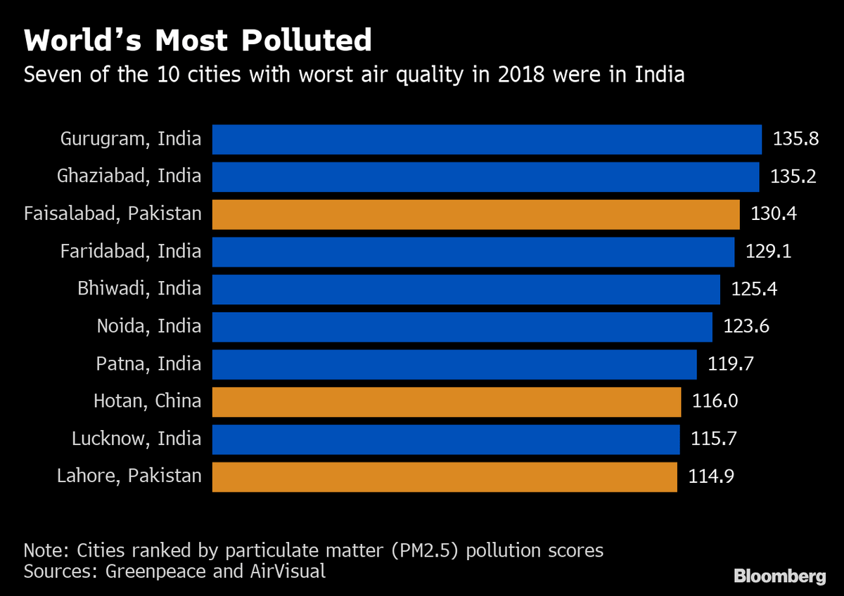 Politicians are only slowly taking notice. Modi’s Bharatiya Janata Party, which managed to get the name of its own clean air program wrong in its manifesto, pledged to focus on 102 cities with attempts to reduce pollution levels by 35 percent over the next five years. The opposition Congress party called air pollution a “national public health emergency” and said it would “significantly strengthen” controls.