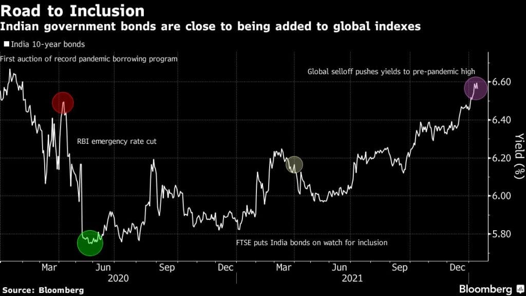 “As growth revives, commercial banks would shed their statutory holdings of sovereign bonds and incrementally reduce their appetite at government auctions,” said Saurabh Bhatia, the head of macro strategy and fixed income at Sapient Wealth in Mumbai. “This makes 2022 an opportune time for bond inclusion to ensure the fast rise in sovereign yields doesn’t jeopardize growth.”