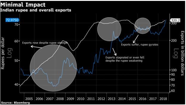 The rupee is Asia’s worst-performing major currency so far this year and that comes amid a global trade war that threatens exports. If anything, a slide in the rupee has ended up inflating India’s import bill.