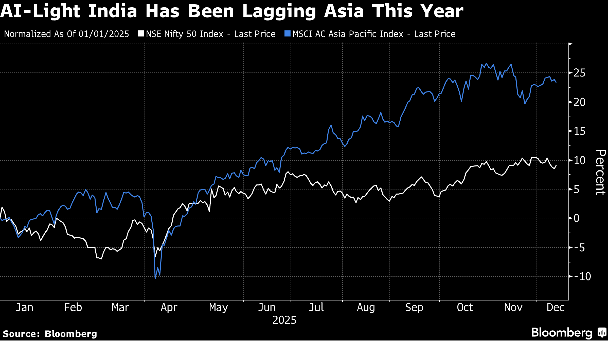 Despite the reforms, local stocks have underperformed global rivals this year, with the Nifty 50 Index rising just 10% as valuations appear stretched. Foreign investors have withdrawn about $18 billion this year from equity markets, and are set to mark their biggest annual withdrawal on record. The rupee’s 5% slide this year, making it Asia’s worst-performing currency, is emerging as a near-term threat to a recovering stock market.