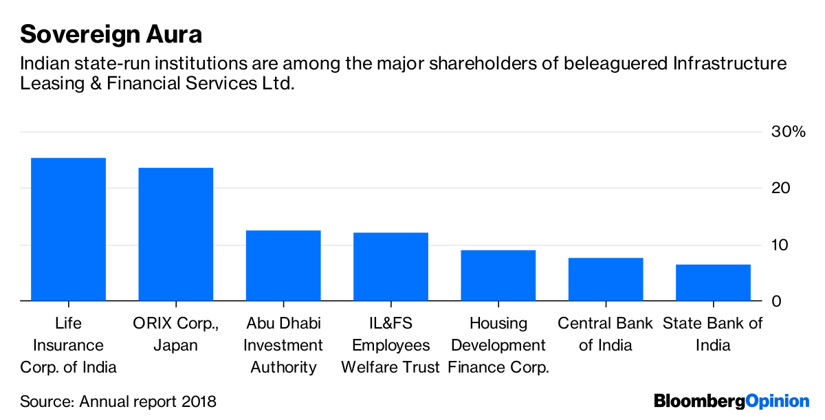 Its majority owners are state-owned, and that’s given IL&FS the aura of a quasi-sovereign. Life Insurance Corp. is IL&FS’s biggest shareholder, yet its officials privately rue the fact that they were diluted in Tirupur to the point they left the operating company’s board. The same state-run insurer will probably have to rescue it now. On Saturday, IL&FS changed its chairman once again.