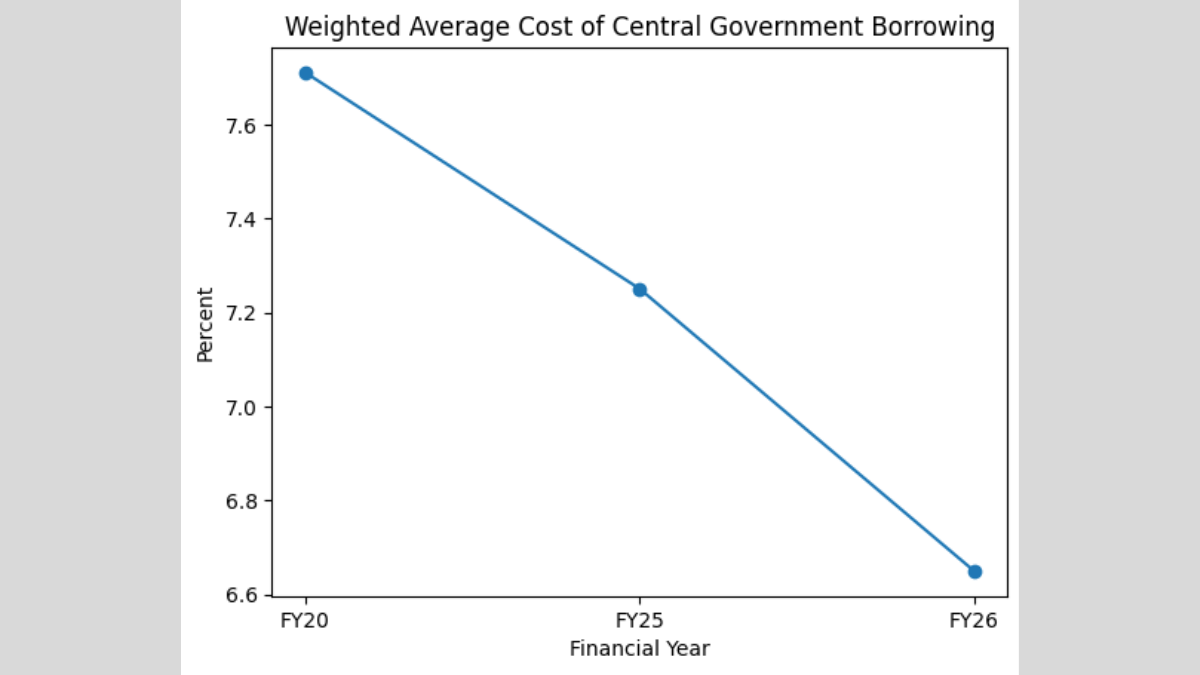 The weighted average cost of new borrowing (WACB) declined from 7.11 percent in FY25 to 6.65 percent in FY26, the Economic Survey said, calling it Centre’s “calibrated issuance” approach. WACB is the average interest that the government has to pay for all of its debt.