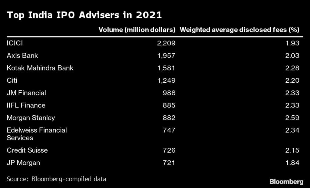 Mumbai: Indian investment bankers are set for their best year ever, collecting almost 26 billion rupees ($347 million) in fees from local initial public offerings that have reached an all-time high in 2021.