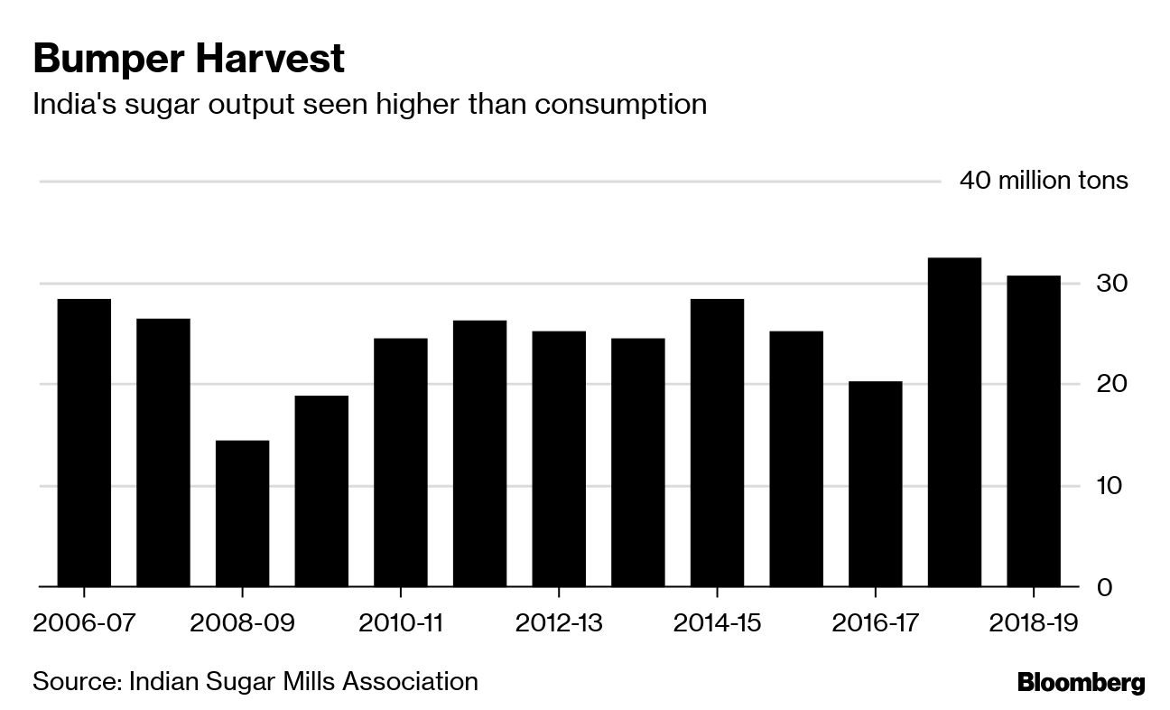 This payment mechanism will allow India, which imports nearly 80 percent of its crude, to comply with the condition that forbids direct fund transfers to Iran for a U.S. waiver from sanctions. It also opens an outlet for India’s swelling sugar reserves as local production exceeds demand for a second consecutive year. The Asia nation, which vies with Brazil as the world’s top sugar producer, is looking to boost exports.