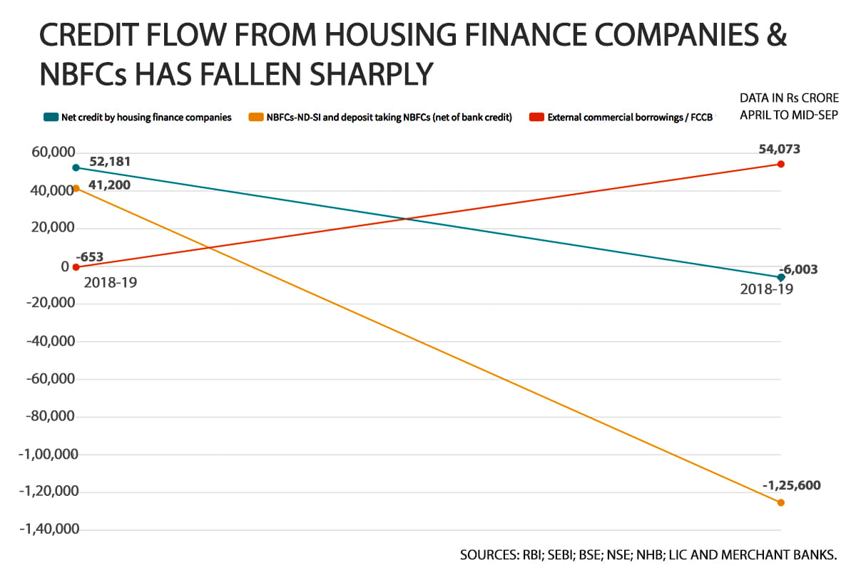 NBFC lending also tells a similar story with flow of funds at a negative Rs 1.25 lakh crore in the April-June quarter as against a positive flow of Rs 41,200 crore in the year-ago period.