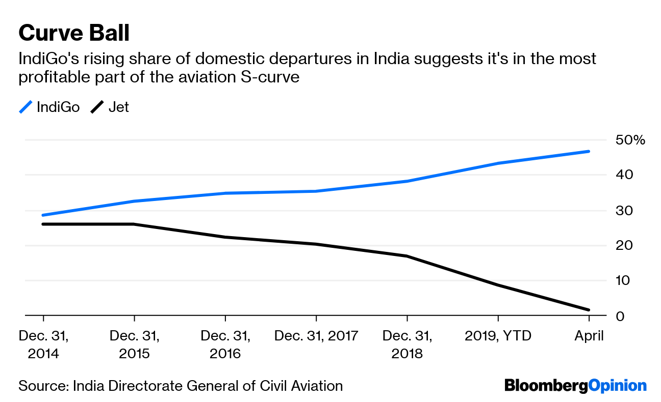 On the far side of the Arabian Sea, meanwhile, an upstart competitor has been limbering up. InterGlobe Aviation Ltd. looks to have flown clear of a horror year for India’s aviation industry, posting a fourfold increase in fourth-quarter profit Monday as the collapse of Jet Airways India Ltd. allowed the rest of the industry to bounce back.