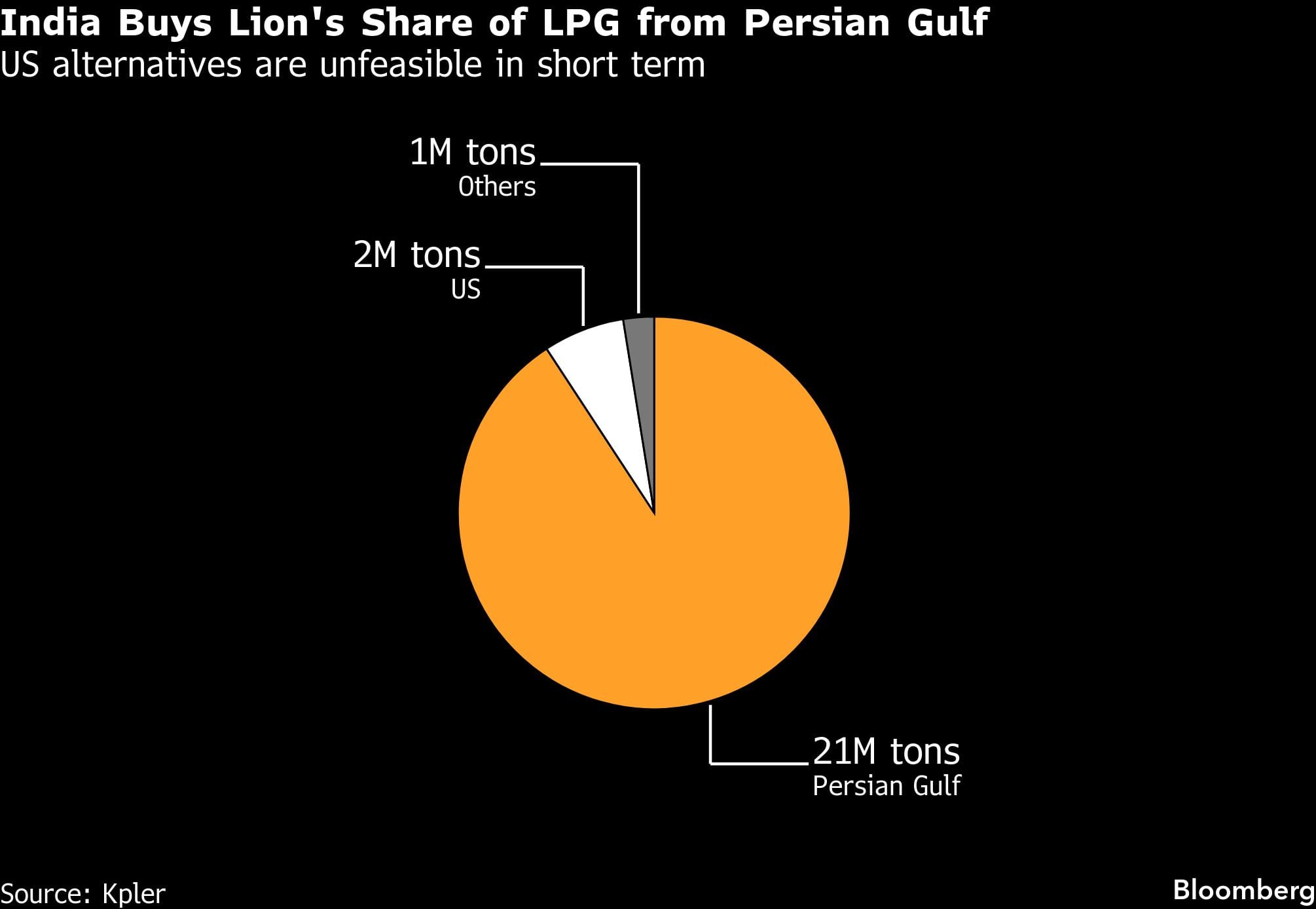 India is the world’s second-largest LPG buyer and buys more than 90% of its supply from the Middle East, according to data intelligence firm Kpler.