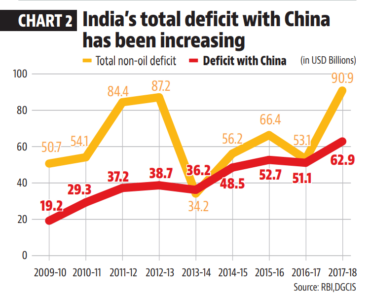 If fulfillment of such targets comes in the form of just the final assembly of imported components being done in India, it’ll have limited gains for both stimulating domestic economic activity and bringing down the trade deficit. The challenge is real when seen in the context of India’s rising non-oil trade deficit with both the rest of the world and China.
