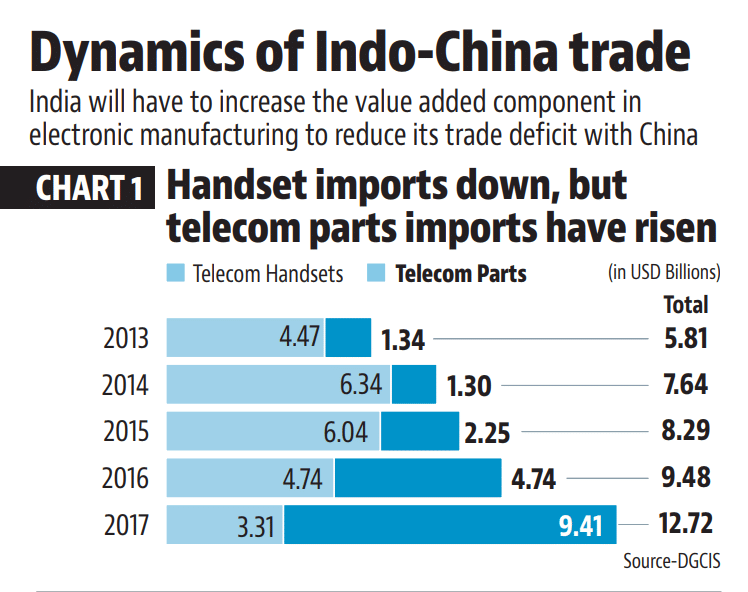 But another set of statistics indicates otherwise. India’s import of parts of mobile phones as well as telecom equipment from China increased from $1.3 billion in 2014 to $9.4 billion in 2017. The total import of mobile phones and telecom parts increased from $7.6 billion to $12.7 billion during this period.