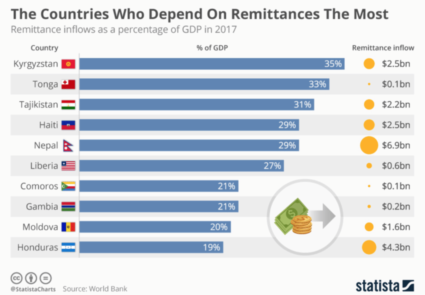 For smaller countries, remittances make up a much higher percentage of GDP.