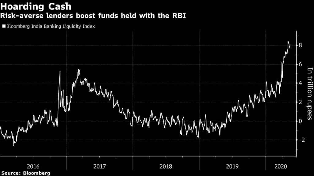The lenders are accepting penalty rates to keep a record $92 billion a day with the Reserve Bank of India and have shunned a central bank program aimed at credit-starved corporates, choosing safety as the pandemic cripples economic activity.
