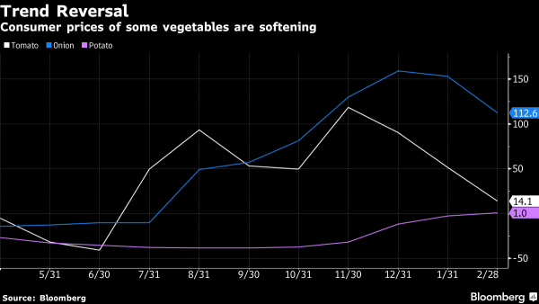 The softening in inflation in March may be temporary and due to a decline in food prices, particularly vegetables and pulses. Pulses and rice are among crops that are eligible for the minimum support price announced by Modi’s administration.