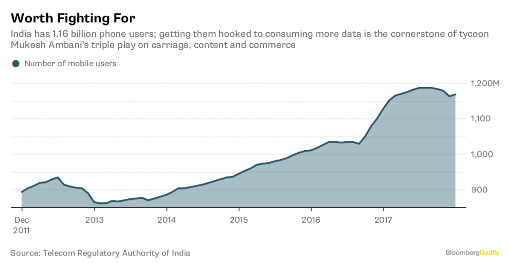 It’s been 18 months since Mukesh Ambani, India’s richest man, entered with Reliance Jio Infocomm Ltd. The 4G wireless network is basically a $31 billion bet on data. Ambani made voice calls — the core offering until then of a dozen mobile operators — absolutely free.