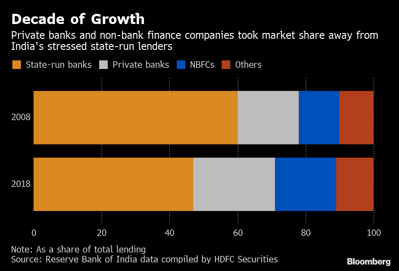 Last year’s defaults by IL&FS exposed fault lines among India’s shadow lenders, which had grown rapidly to account for a third of all new loans over the previous three years. Though the government’s decision to seize the company helped contain the crisis, a lingering credit crunch has led to reduced demand for goods like automobiles and triggered investor concerns about Indian mutual funds that hold debt issued by non-bank finance companies.