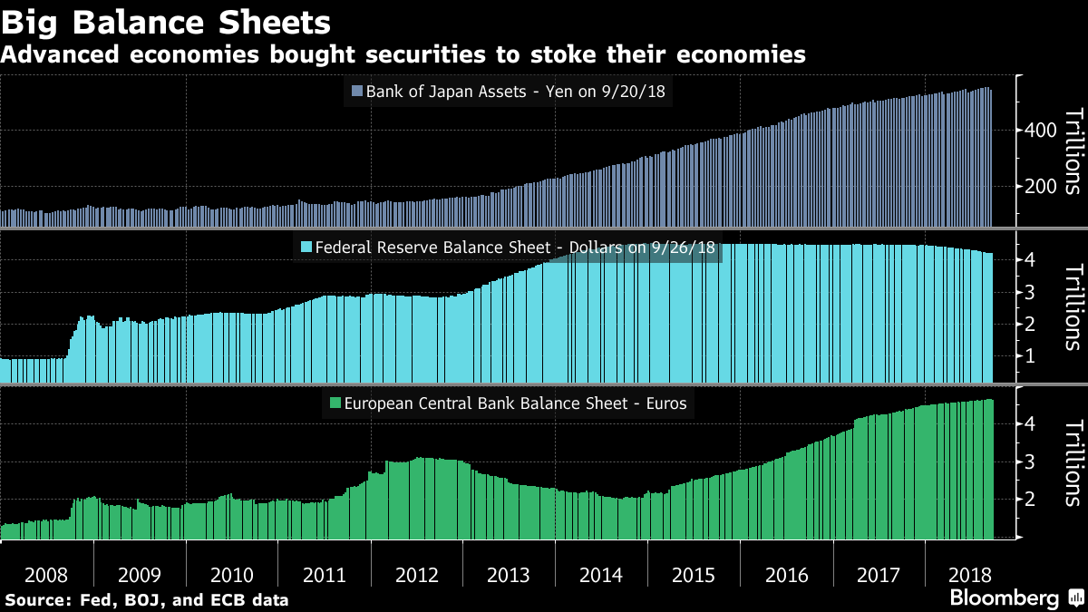 All told, Bank of America Corp. calculates global central banks cut interest rates about 700 times and bought $12 trillion of financial assets since September 2008’s collapse of Lehman Brothers Holdings Inc. Global government debt surged about 75 percent to $67 trillion.