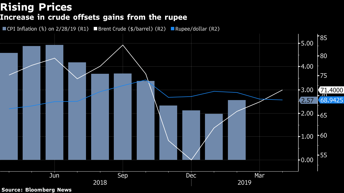 “It appears on balance that the recent hardening of oil prices would have negated the impact of rupee appreciation to a large extent,” said Gaurav Kapur, chief economist at IndusInd Bank Ltd. in Mumbai.