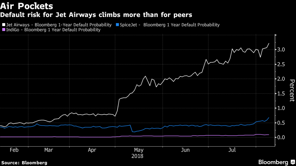 “Jet Airways is facing challenges on all fronts,” Bloomberg Intelligence’s Singapore-based analyst Rahul Kapoor said. “The rise in oil prices is having a double whammy on their earnings. They already have a sparse balance sheet compared with other Indian carriers.”